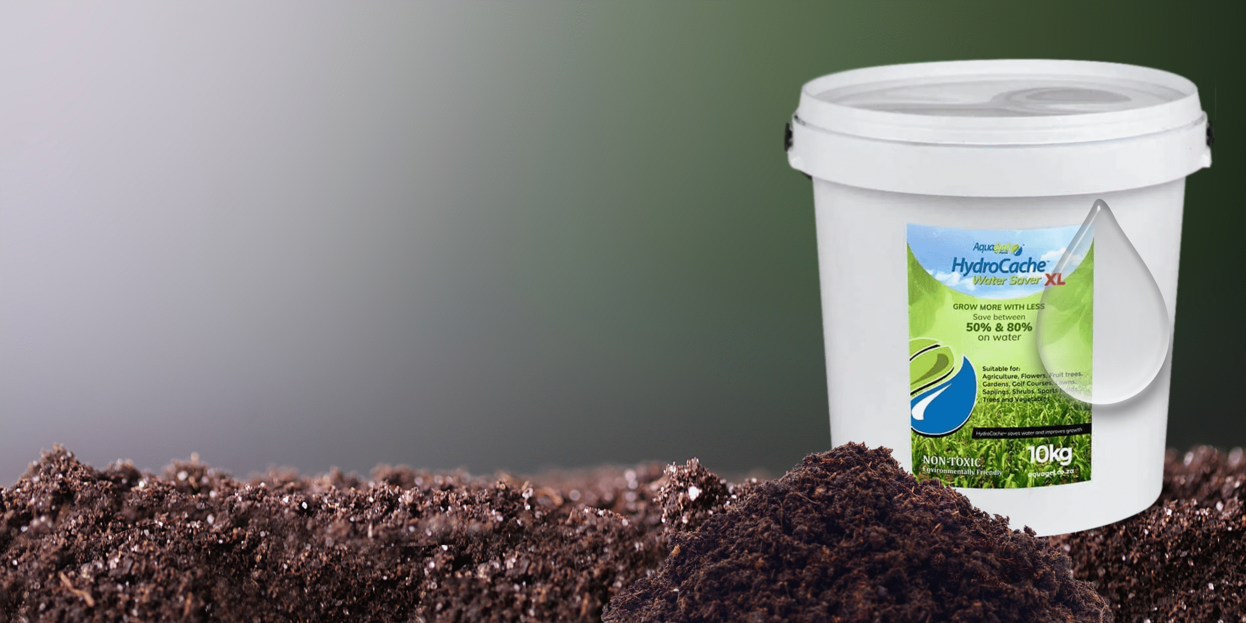 Hydrocache™ is a carbon enriched polymer that retains water and soluble fertilizer particles in the soil.