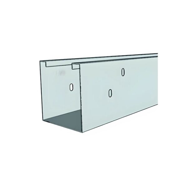 76.2 x 76.2 mm steel trunking channel, 3 m length, for enclosed cable runs with pre punched fixing slots.