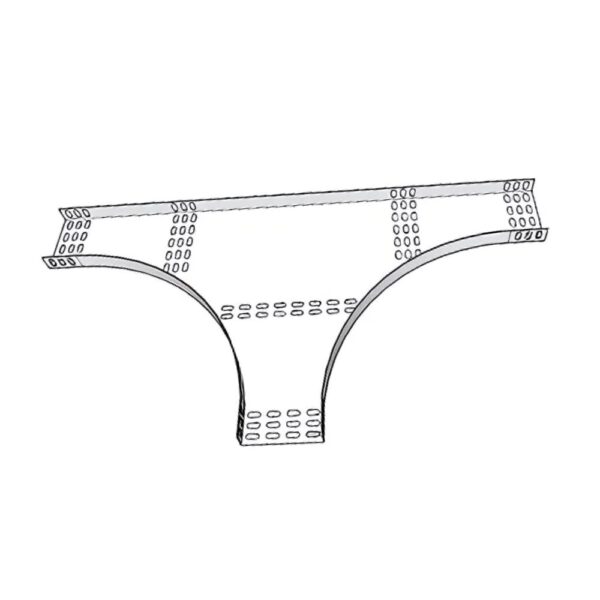 Flat cable tray fitting used to securely create a branch connection, allowing a Medium or Heavy Duty (MD/HD) cable run to split off a main straight line